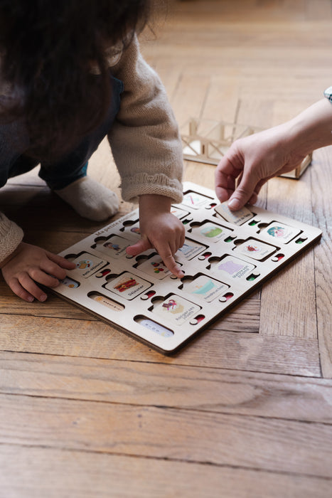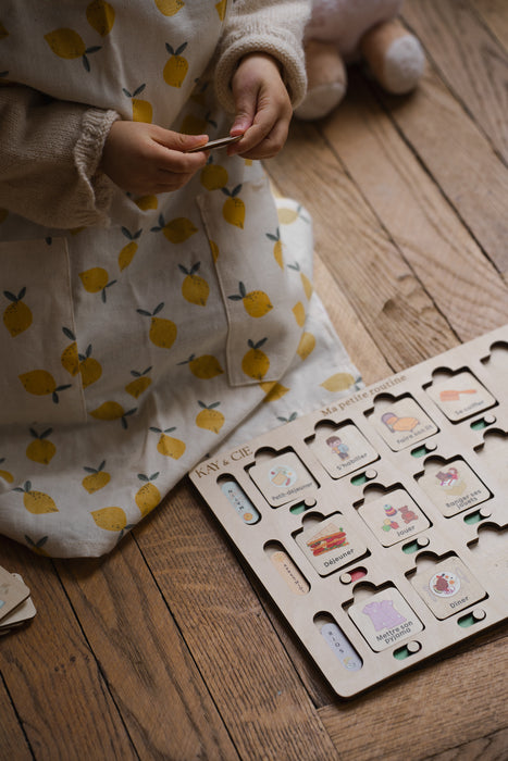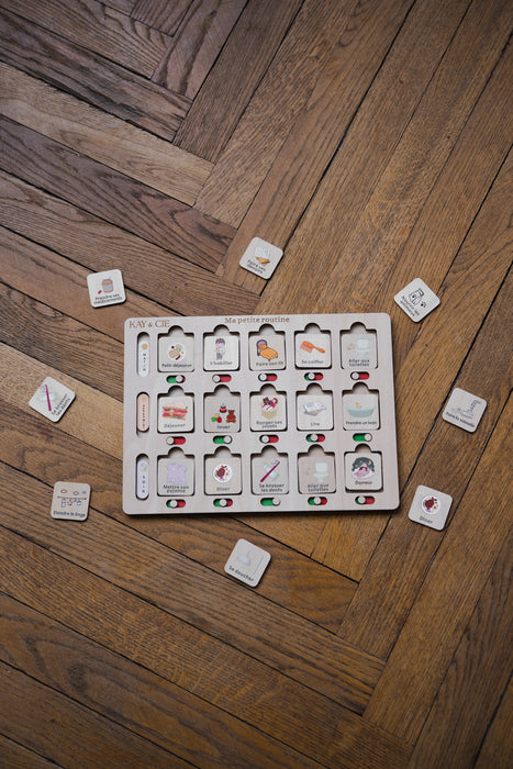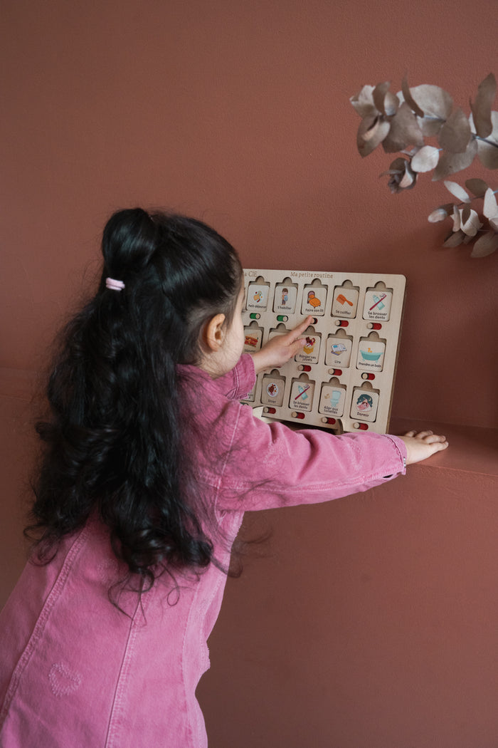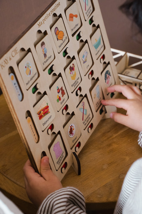 Pensé pour les tout-petits, le tableau utilise des illustrations claires et colorées pour que même un enfant non lecteur comprenne chaque action.
